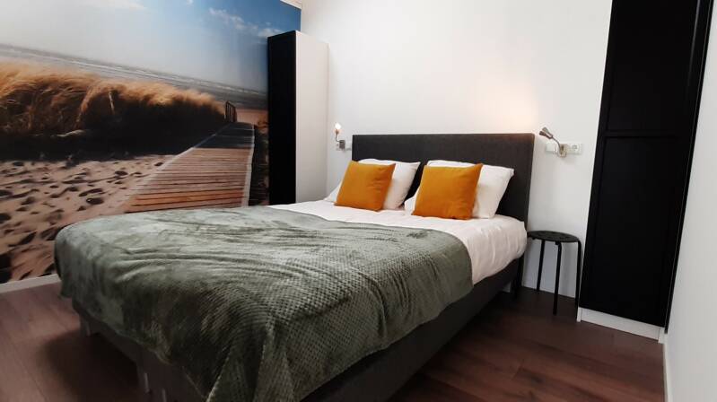 is een ruim appartement met 2 slaapkamers, met in elke slaapkamer twee 1-persoons boxspringbedden, deze kunnen indien nodig, ook los van elkaar gezet worden.